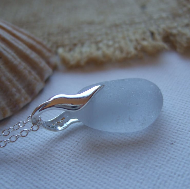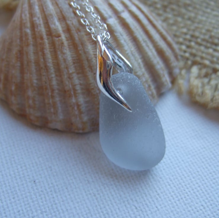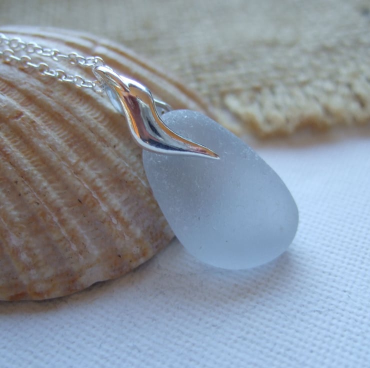 The piece of sea glass is lovely and frosted and a perfect drop shape!