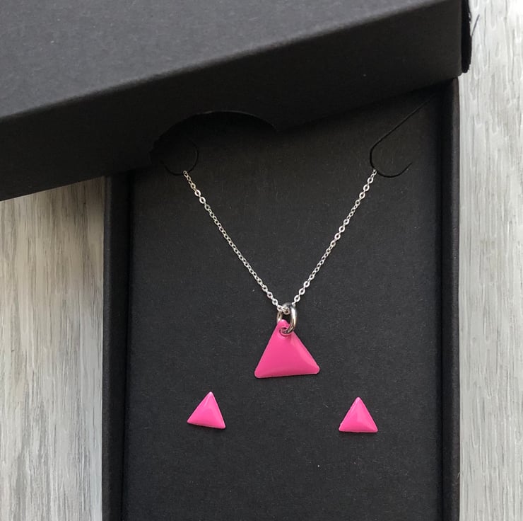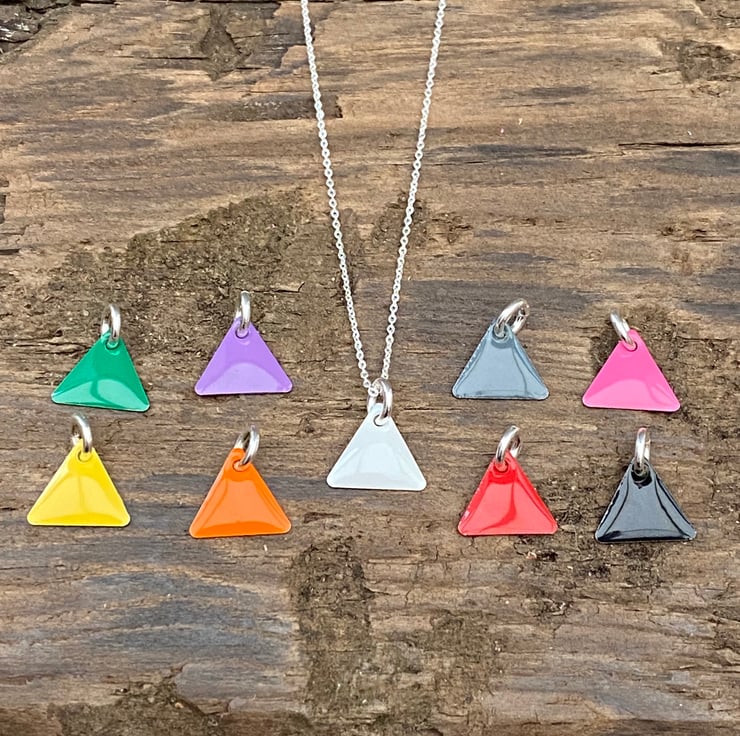 Matching sterling silver stud earrings also available in my shop: https://folksy.com/items/7531343-Enamel-triangle-stud-earrings-Sterling-silver-studs-