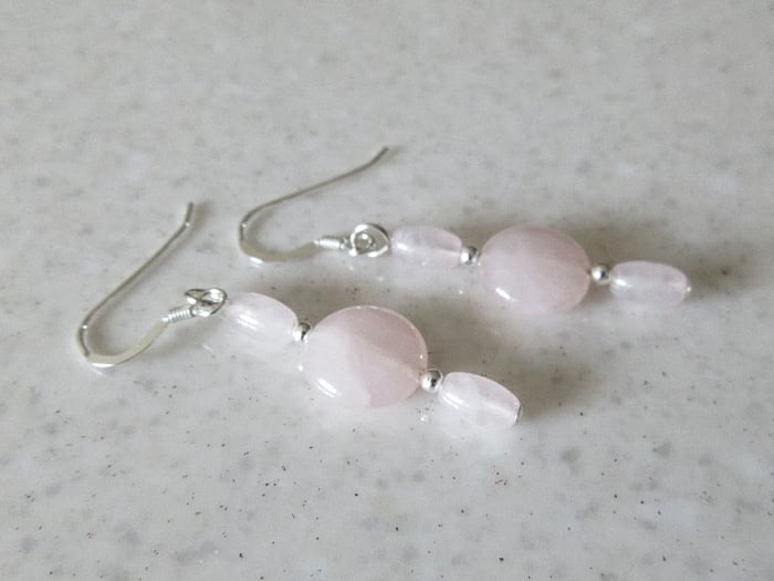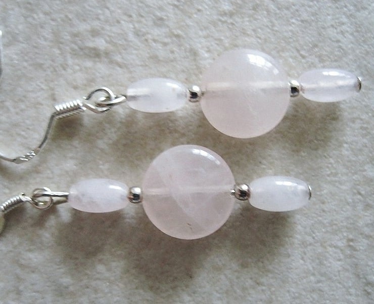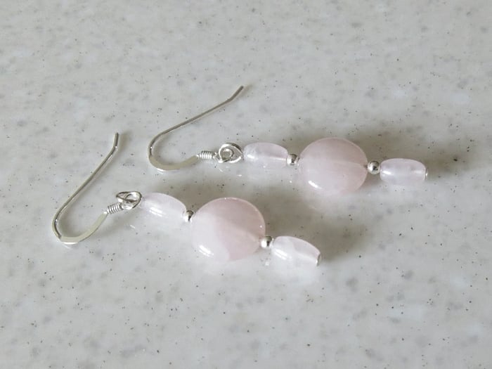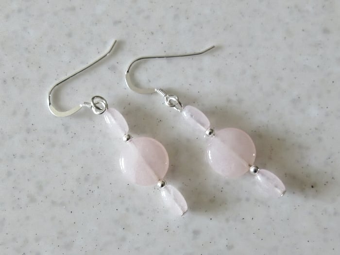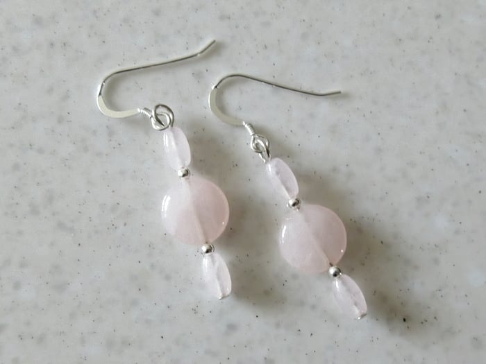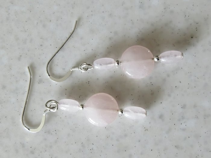 Dainty & feminine, these elegant pink earrings have 10mm Rose Quartz coin beads.