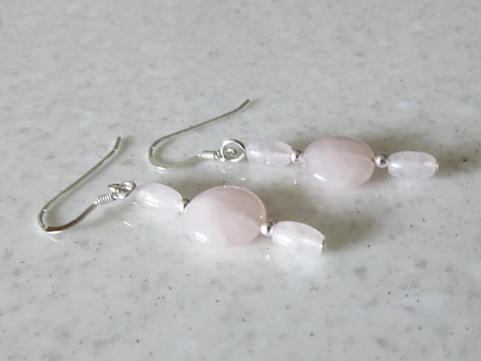 Above & below these are small 6mm x 4mm rice shaped Rose Quartz semi precious gemstones.