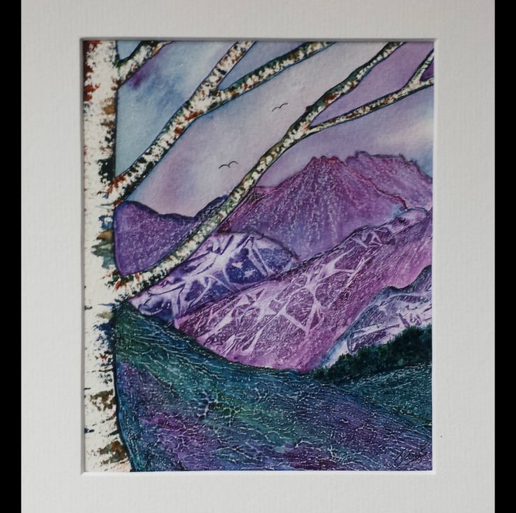 Mounted and in a distressed pine frame. Imperfection to edge of frame and slight imperfections to front but not noticeable when hanging. Non standard frame size