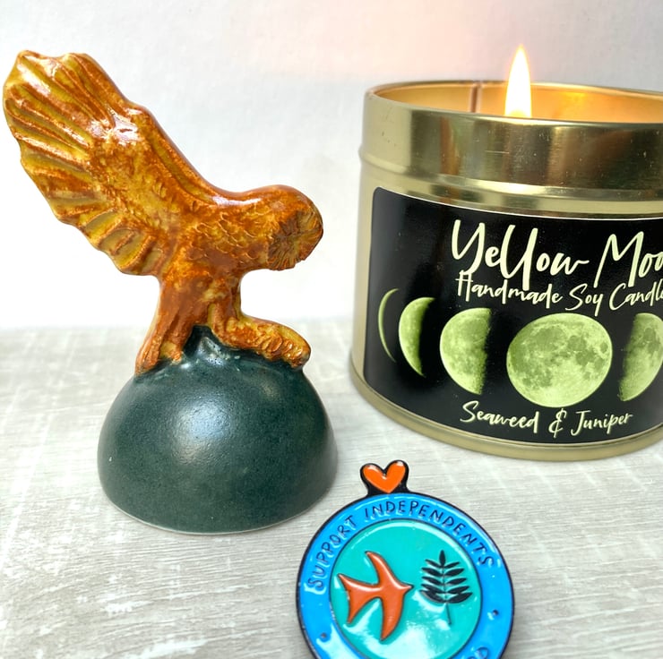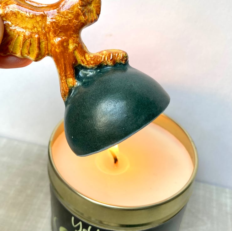 Hand made ceramic candle snuffer, created from my own original model and mould for repeats. Each one hand finished and glazed to make it as individual as you are. Detail is one side only to keep the price reasonable.