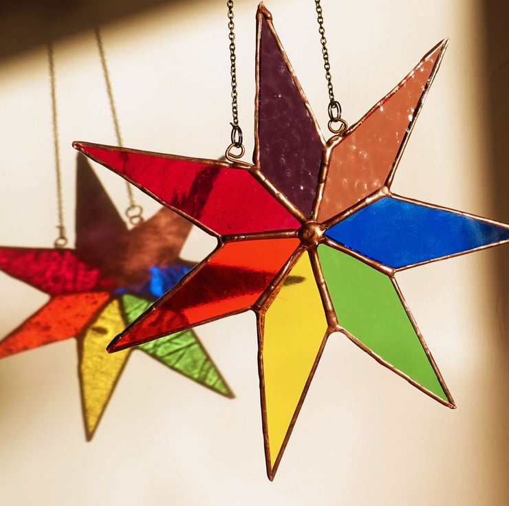 Hang it in your window where it will let in the light during the day, and illuminate at night. Hang from your Christmas tree, or anywhere in your home you feel you need the cosmic influence of a rainbow.