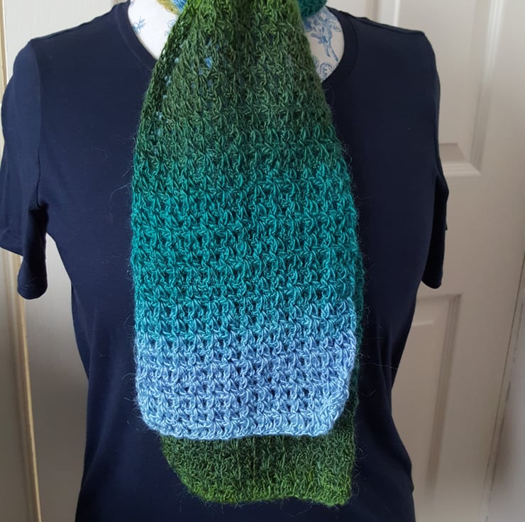 Here we have a beautiful lacy crocheted scarf.
