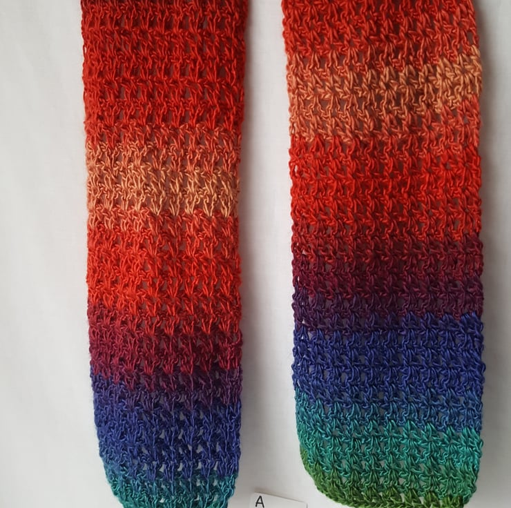 Here we have a beautiful lacy crocheted scarf.