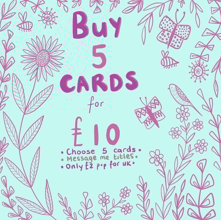 This card can be bought as a card pack of 5 cards for £10, just click on the link in my shop to buy and let me know which 5 cards you’d like to include