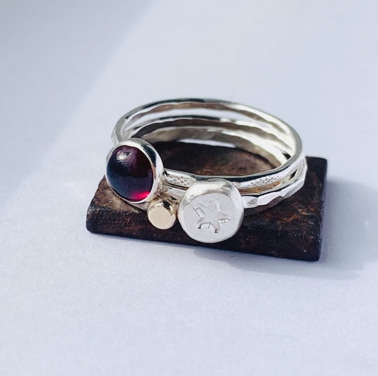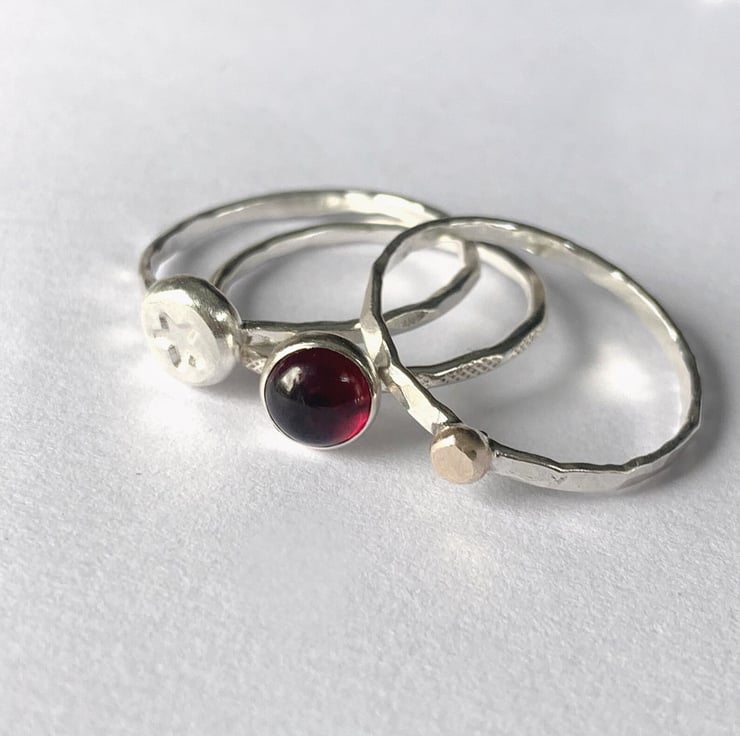 These 3 rings are made from 1.2 mm silver round wire, the profile wire has been hammered giving the ring a unique organic contemporary look. catching the light.