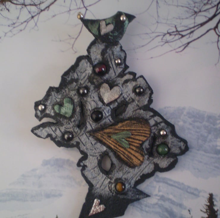 Unusual tree brooch with a bird perched on top.