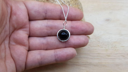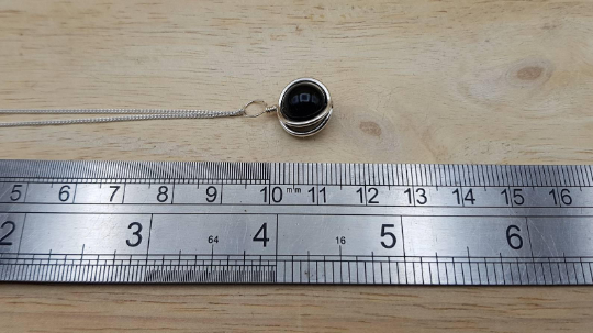 This is a small minimalist Silver black tourmaline pendant necklace made with silver frame. A perfect accessory to the little black dress This is not stamped or hallmarked.