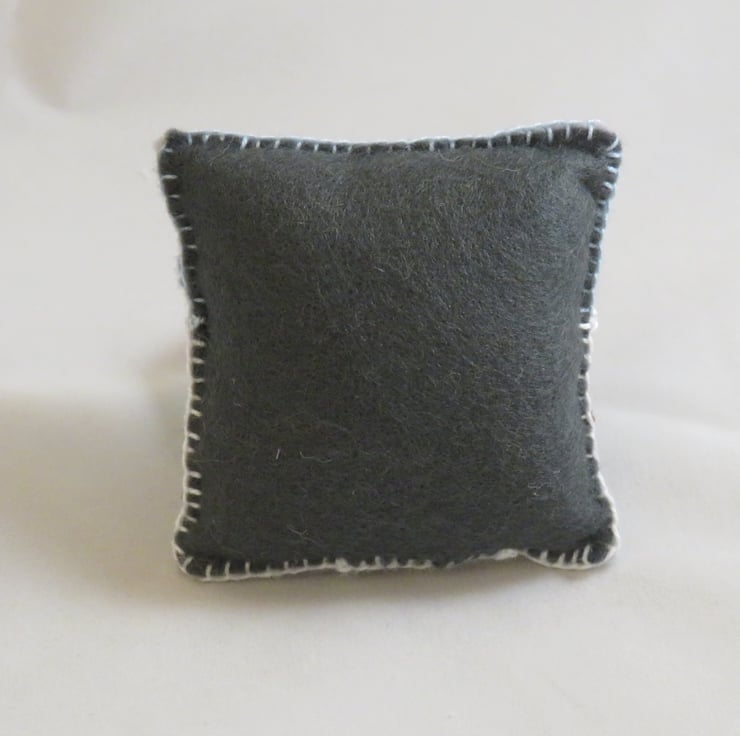 The back of the pincushion is grey eco felt. The pincushion is firmly stuffed with polyester filling.