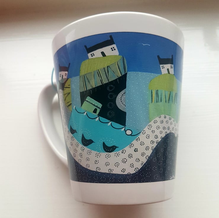 This latte mug depicts a design from one of my paintings.. washing care instructions included