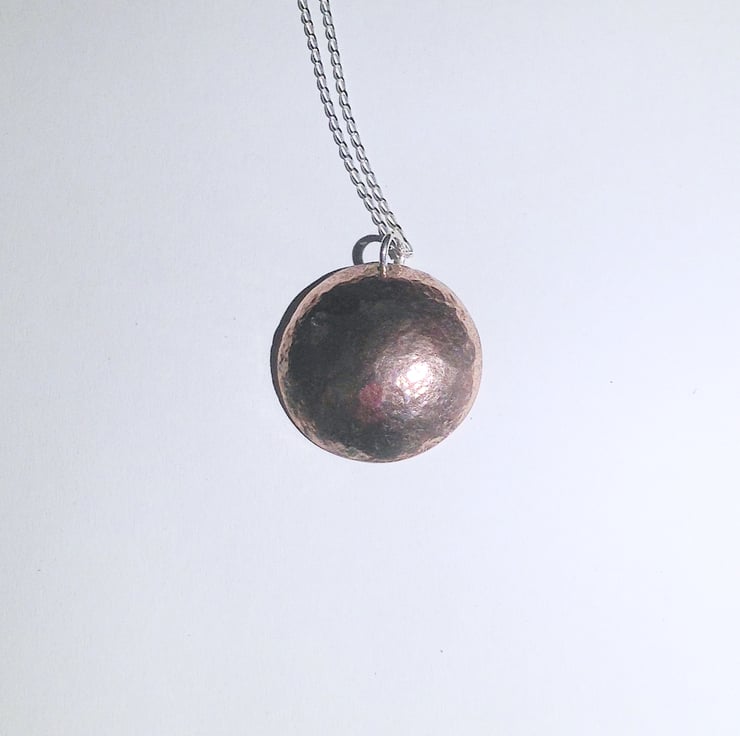 This beautiful pendant necklace has been handmade from copper which has been given an attractive finish from hammering and then slightly corroded before being cleaned up.