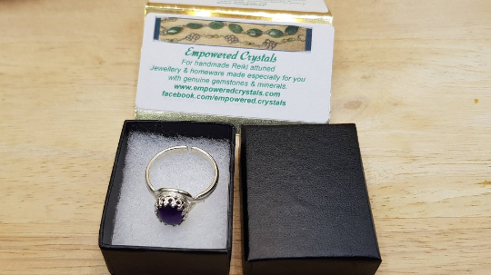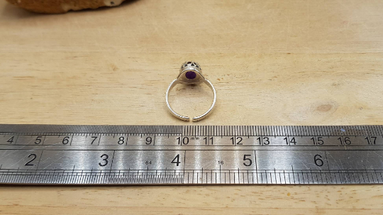 This is a lightweight women's sterling silver genuine undyed natural Amethyst adjustable ring.