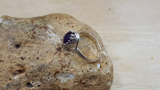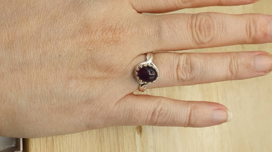 This is a lightweight women's sterling silver genuine undyed natural Amethyst adjustable ring.