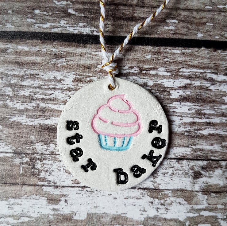 This listing is for one "Star Baker" style tag, with a cute cupcake design.