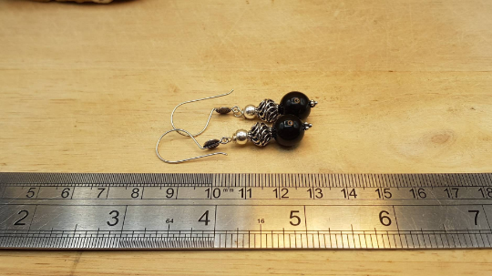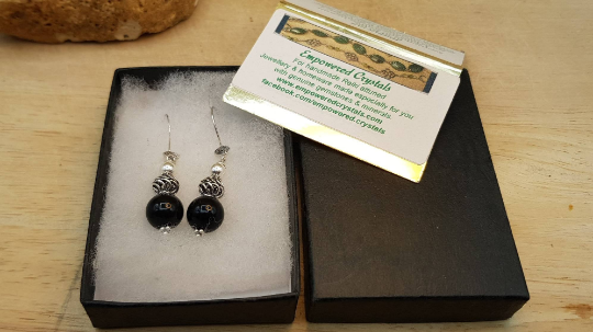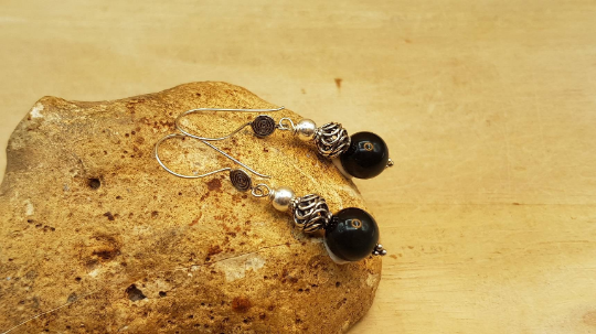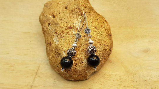 These are Bali silver black tourmaline dangle drop sphere earrings. Bali silver beads are handmade beads by the world renown silversmiths of Bali and contains up to 99% silver but is not hallmarked or stamped.
