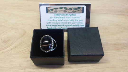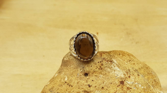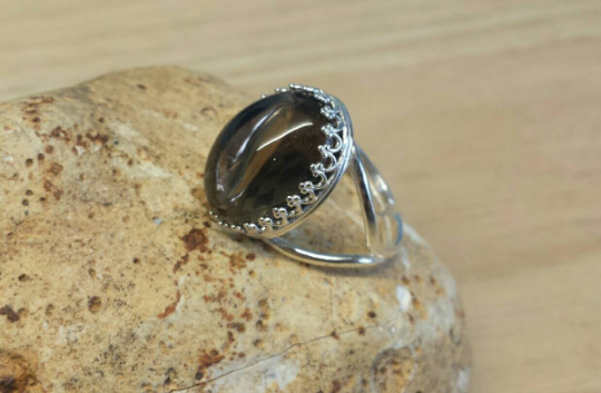 This is a lightweight women's sterling silver genuine Smoky quartz adjustable ring.