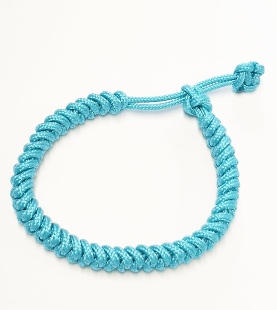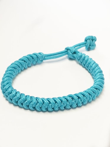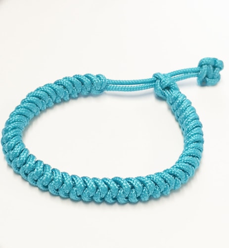 Handmade bracelet using turquoise blue 2mm thick paracord. I have used a variety of techniques to make this adjustable mens and ladies bracelet, including a diamond knot and tibetan snake knot weave.