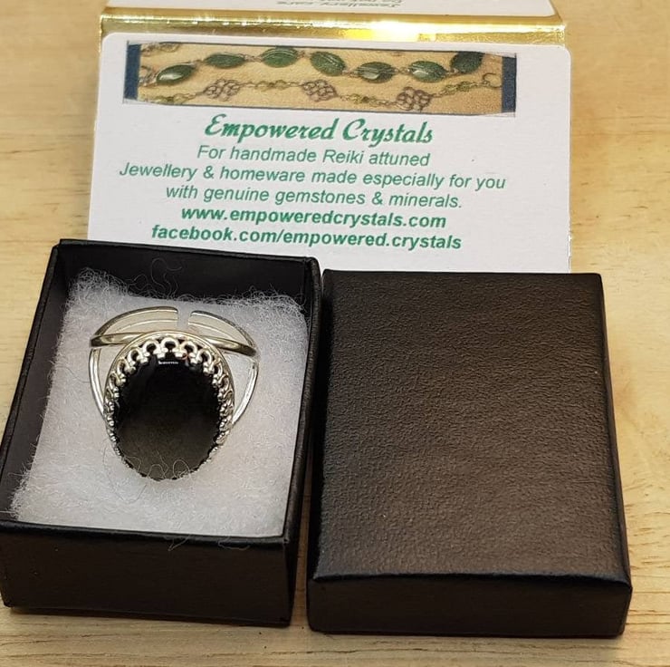Golden sheen Obsidian ring. 925 sterling silver rings for women. Reiki jewelry