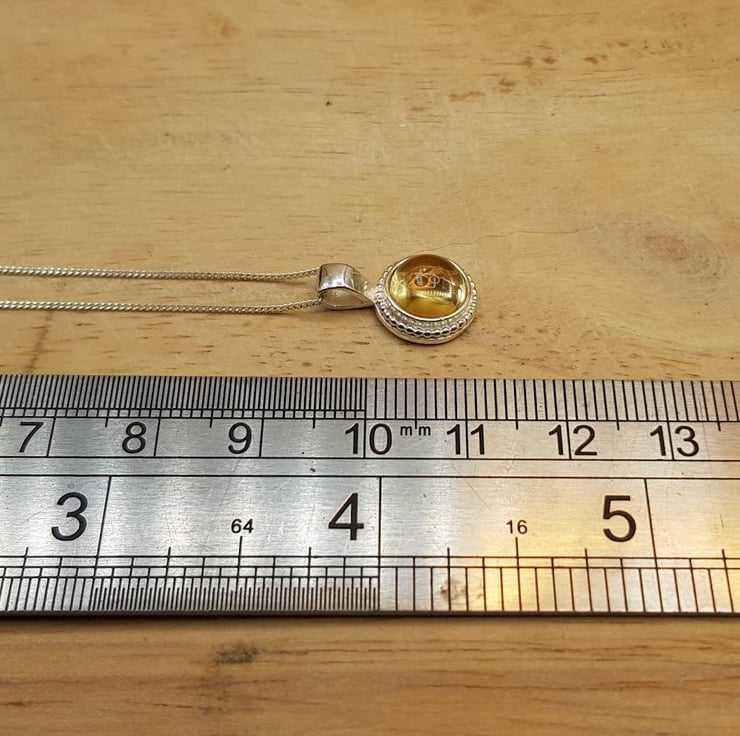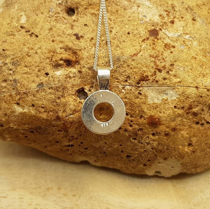 Tiny minimalist circle Citrine pendant necklace. November birthstone
