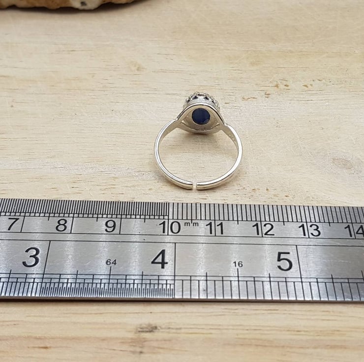 Oval Blue Kyanite adjustable ring. 925 sterling silver rings for women