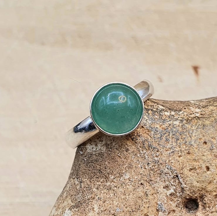 This is a women's minimalist sterling silver Green Aventurine adjustable ring.