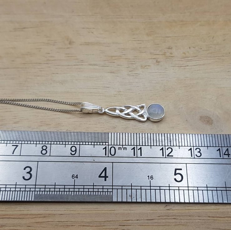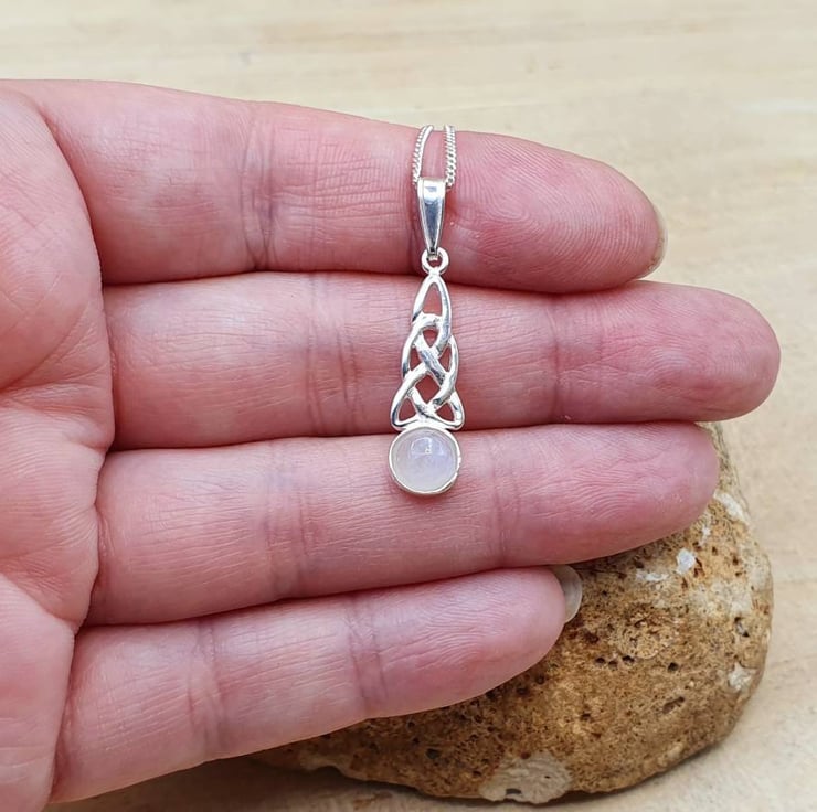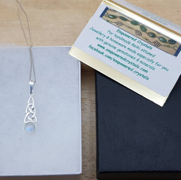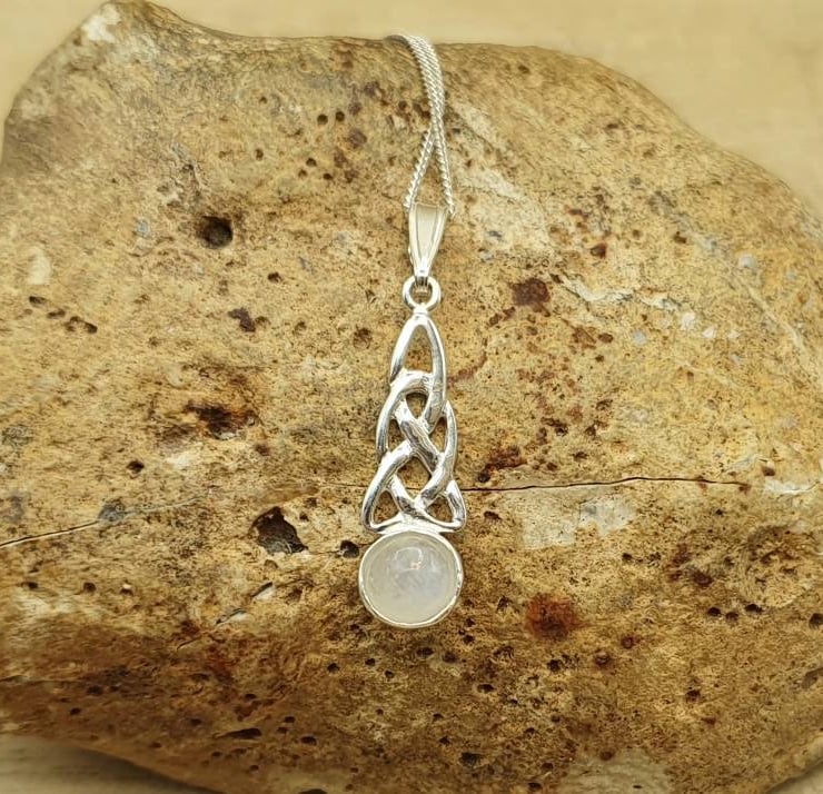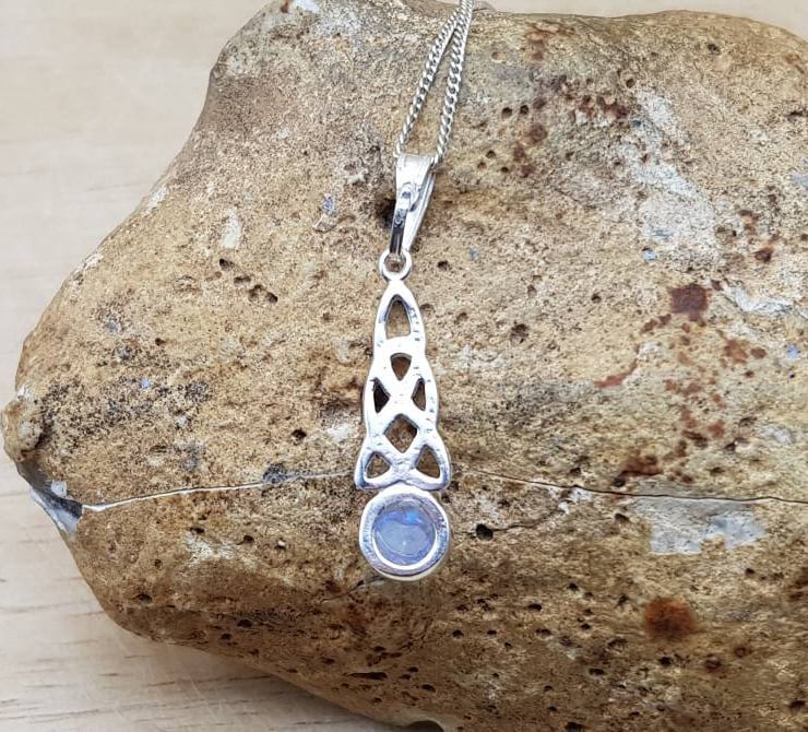 This is a women's sterling silver Rainbow Moonstone Celtic knot Pendant Necklace.
