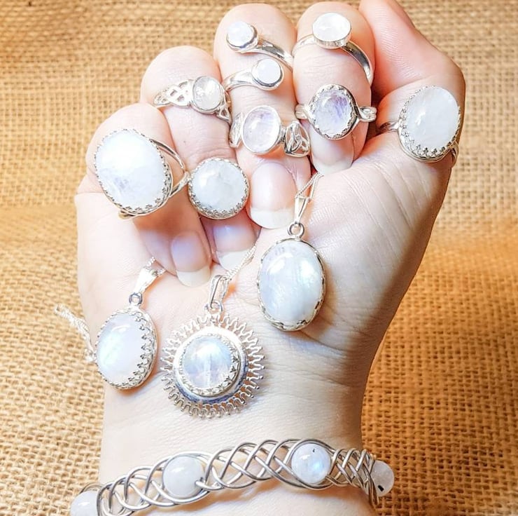 Moonstone is said to balance our emotions and makes us feel more stable and calm & to be good to wear during stressful periods of our life as it is said to bring calm and a rationality to our minds when it is easy to let things get out of control. It is also believed to bring success in love and business matters.