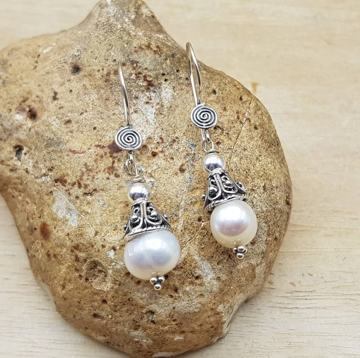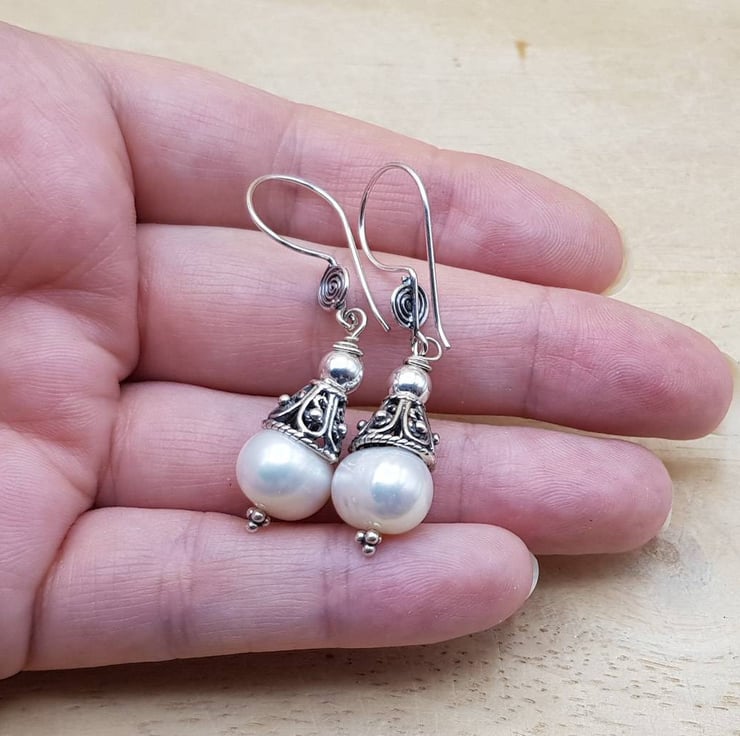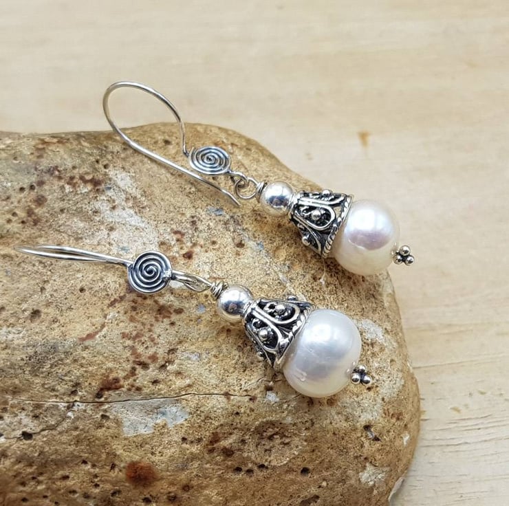 These are geniune fresh water pearls that are naturally formed and so are not uniform in shape, each one has a unique shape which is part of its natural beauty.