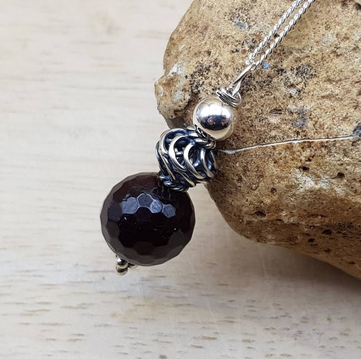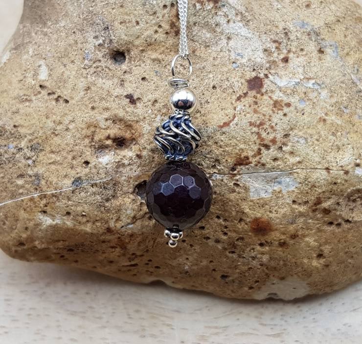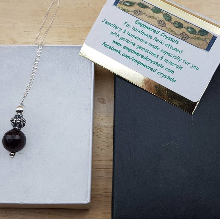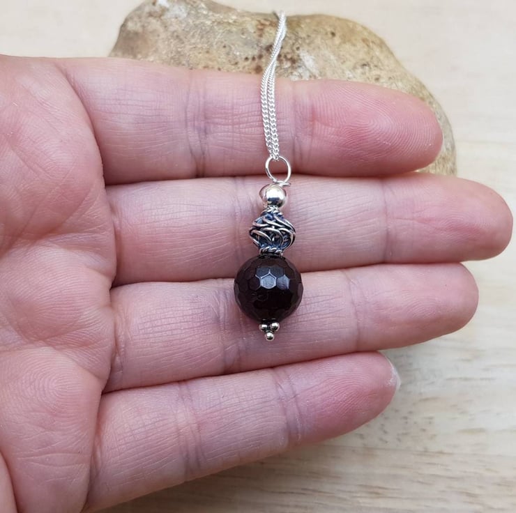 This is a small, delicate Sterling silver dark red garnet pendant necklace. I have made this with Bali silver beads which are handmade beads by the world renown silversmiths of Bali and contains up to 99% silver but is not hallmarked or stamped.
