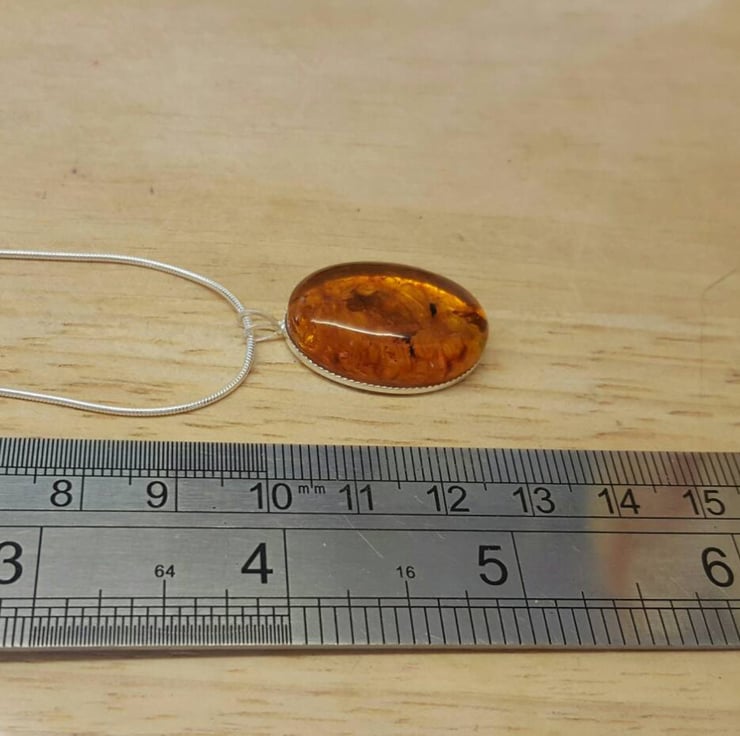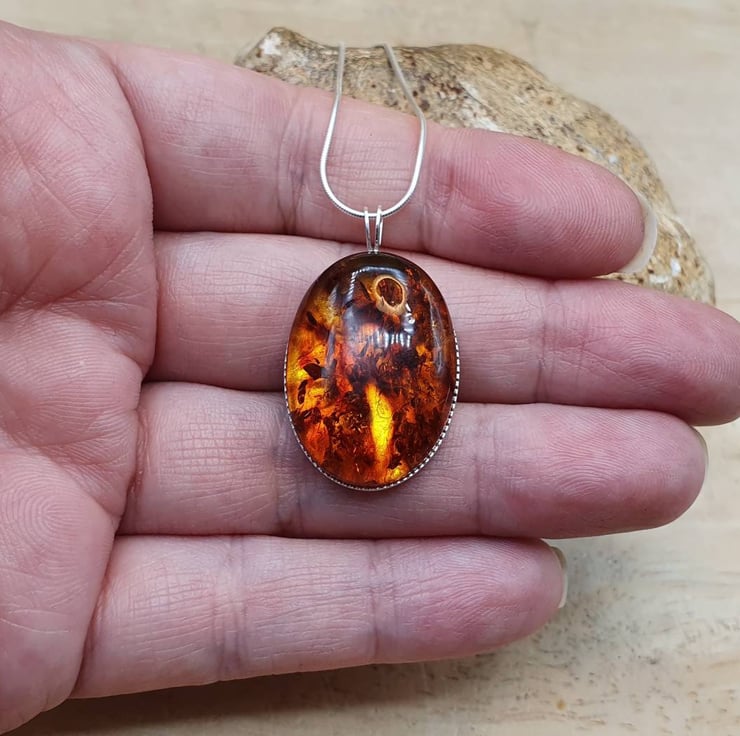 This is a women's lightweight sterling silver Russian pressed amber pendant necklace.