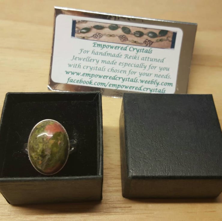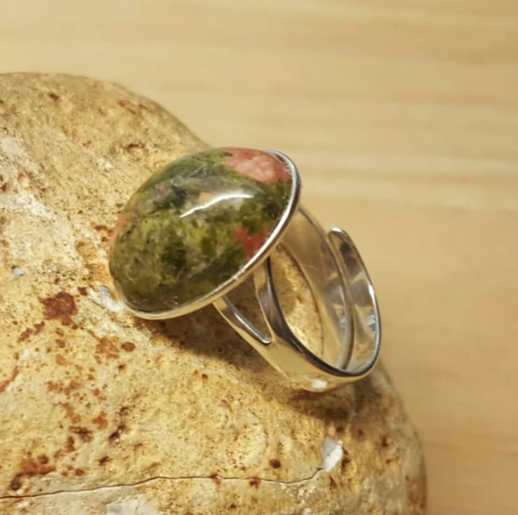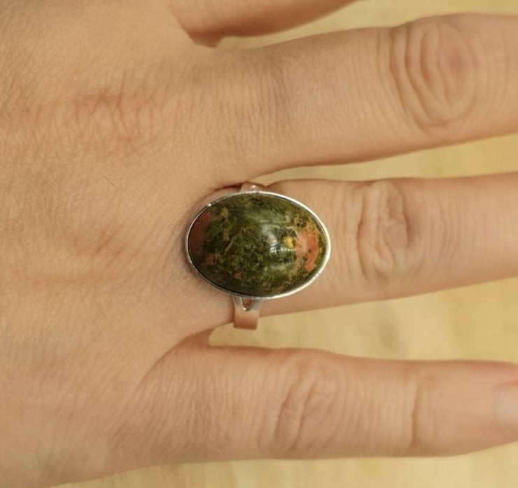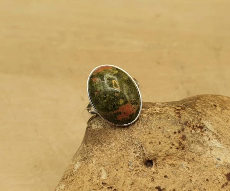 This is a women's sterling silver oval unakite adjustable ring. MADE TO ORDER STONES WILL VARY FROM THE PHOTOS.