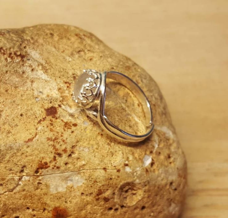 Sterling silver ring is adjustable so should fit most ring sizes.
