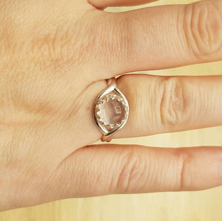 This is a lightweight sterling silver clear Quartz adjustable ring. Please note that this is a high quality quartz this is not glass.