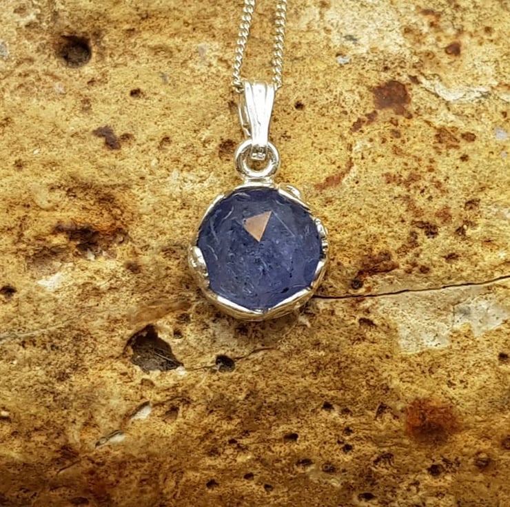 Tiny Tanzanite pendant. 925 sterling silver. minimalist December Birthstone