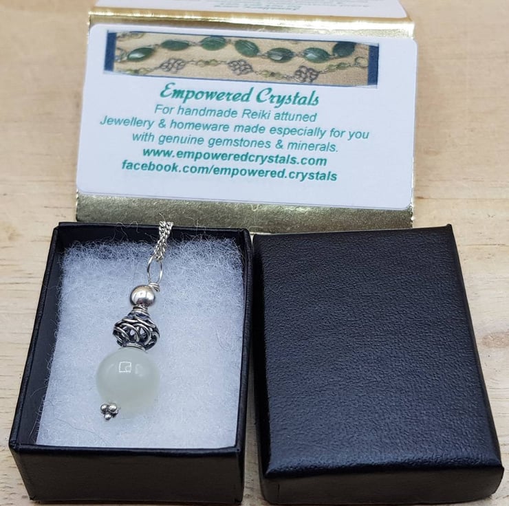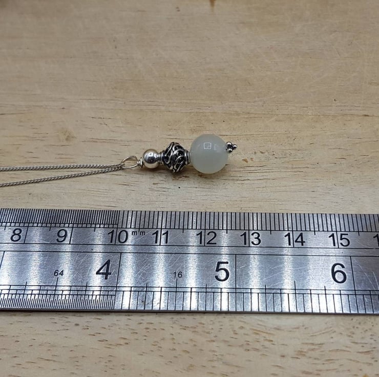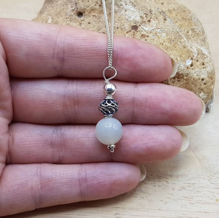 This is a Bali silver white Moonstone Pendant Necklace, ideal for a June birthstone for women that love unique handmade minimalist gemstone jewellery.