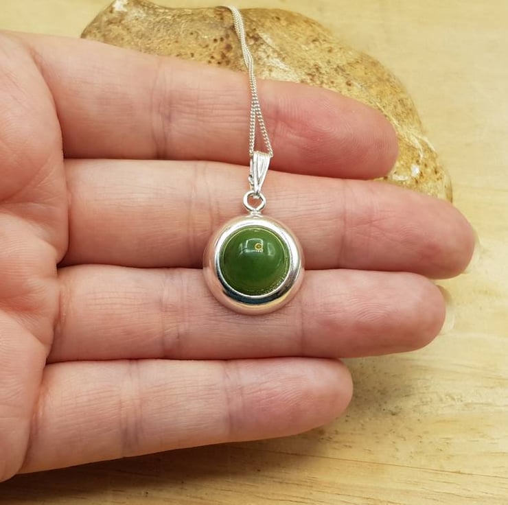 Small round Nephrite Jade pendant.12th anniversary gemstone.