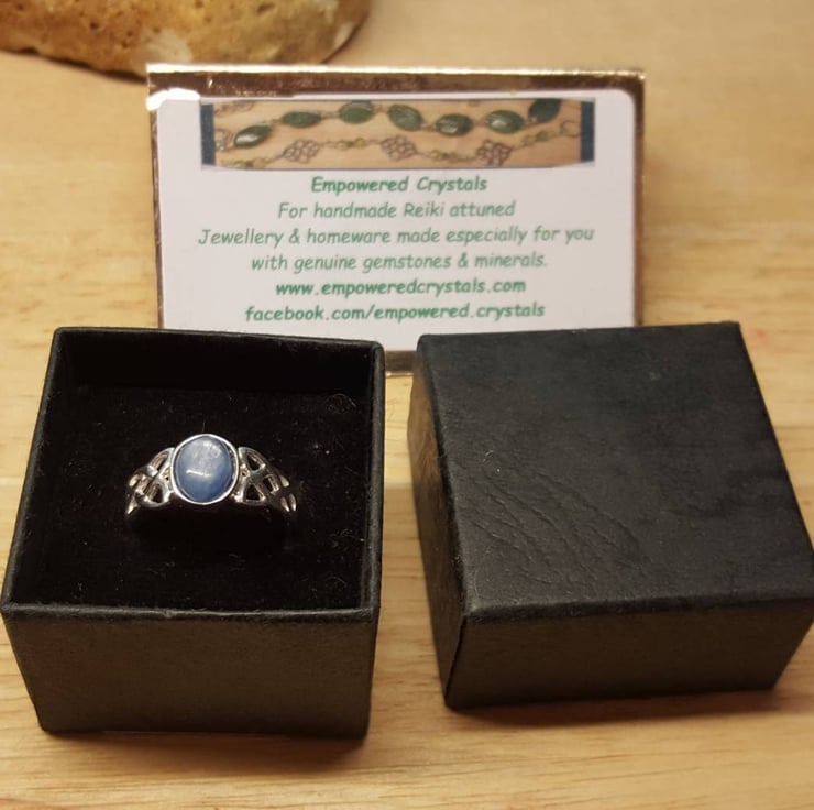 This is a small lightweight sterling silver genuine Kyanite gemstone ring.