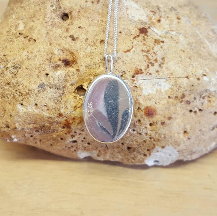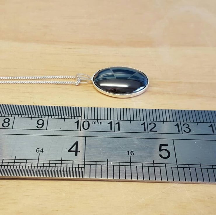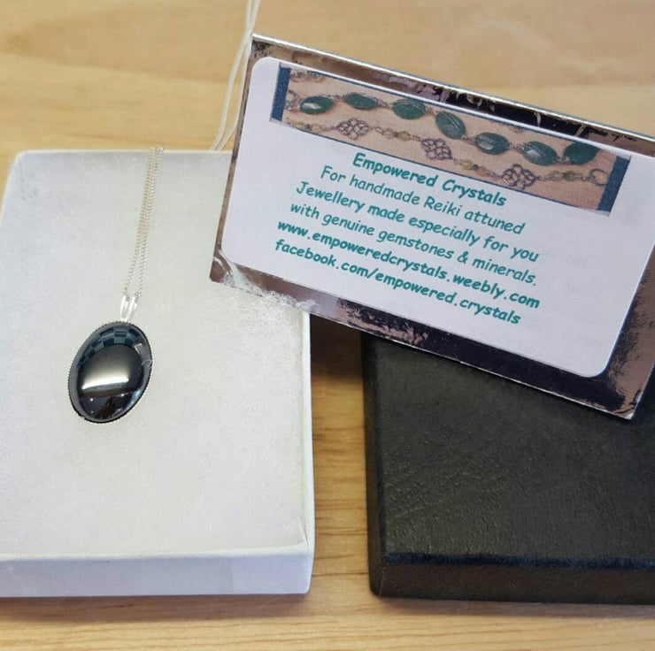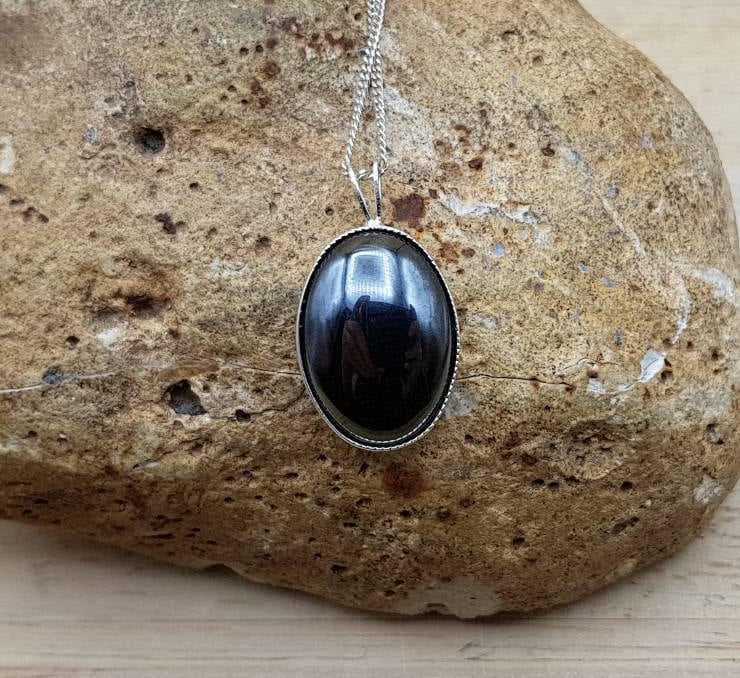 This is a women's simple oval sterling silver Hematite pendant necklace.