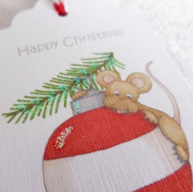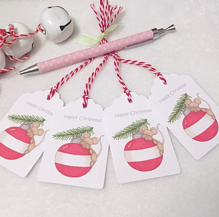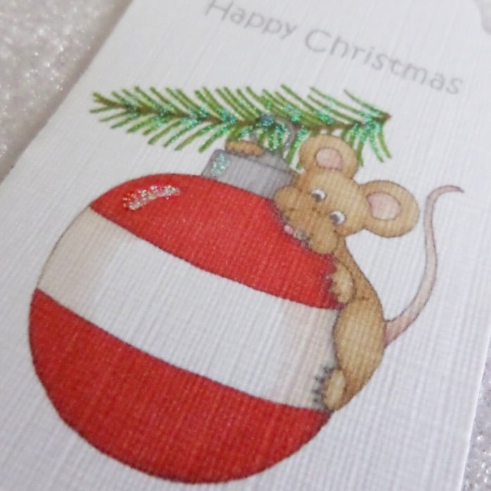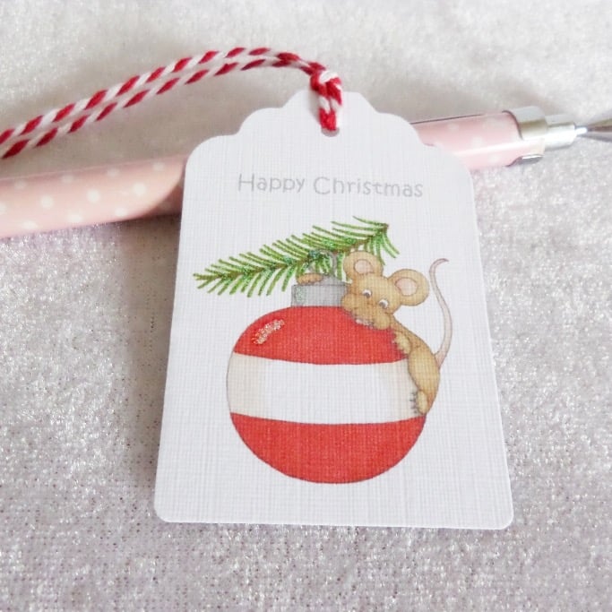 These cute Christmas Bauble Mouse gift tags have been designed using my own original watercolour illustration. I have designed them to match and compliment my handmade cards in the same design.