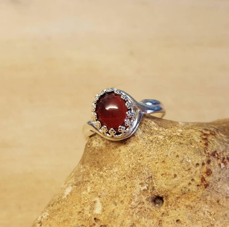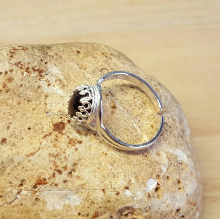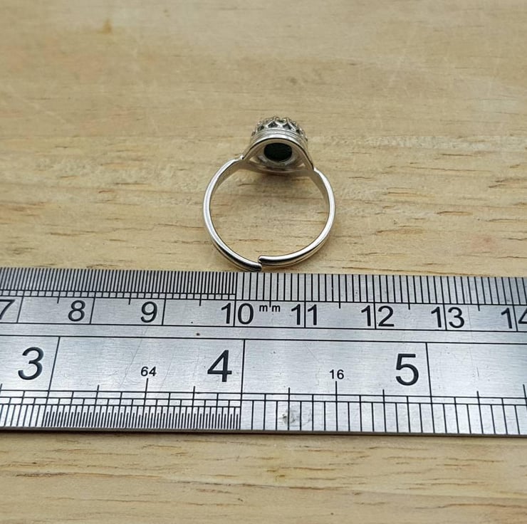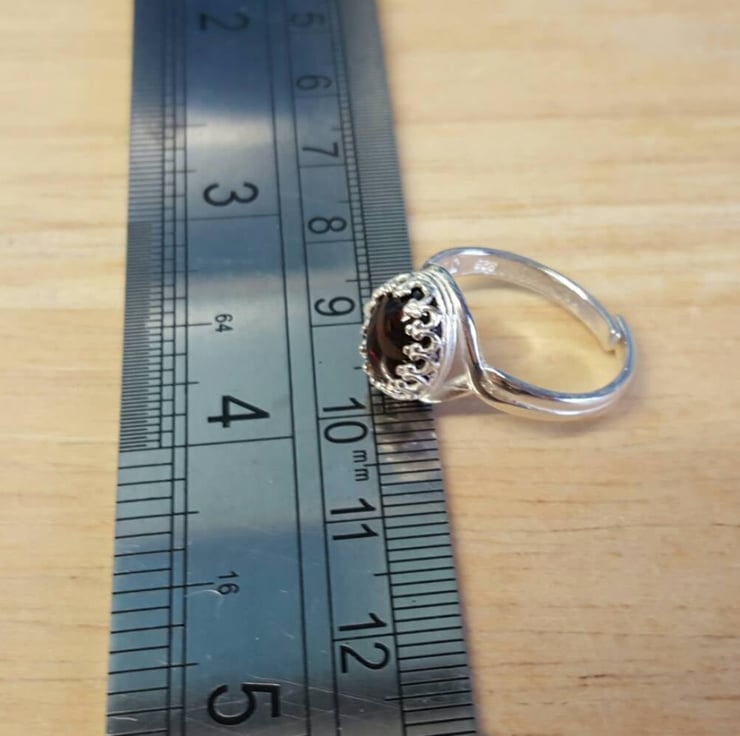 Sterling silver ring is adjustable so should fit most ring sizes.
