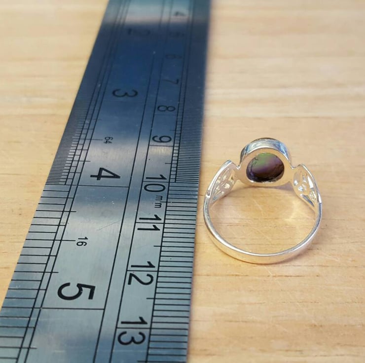 Natural Green Abalone triquetra Celtic knot ring. UK Size M