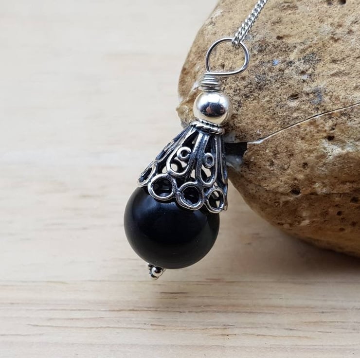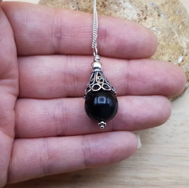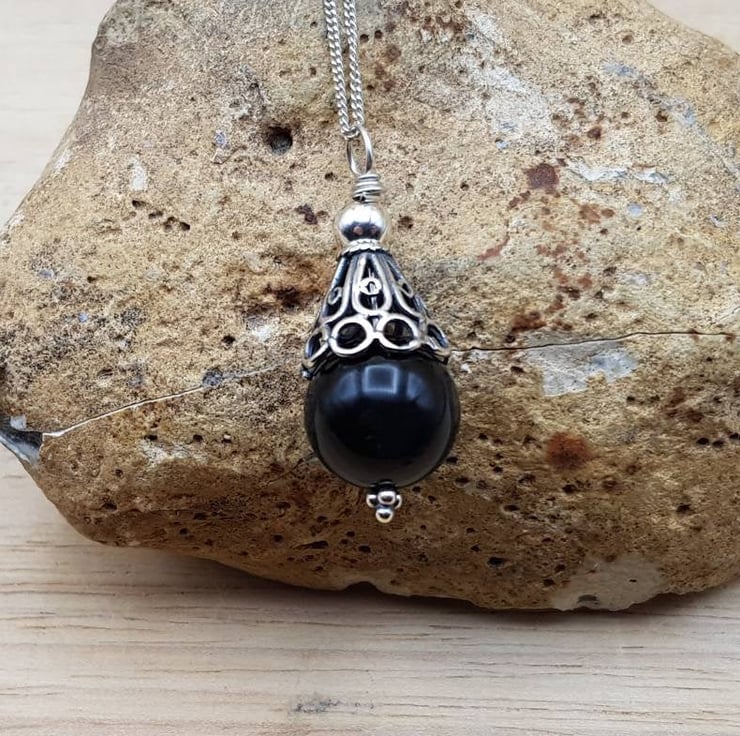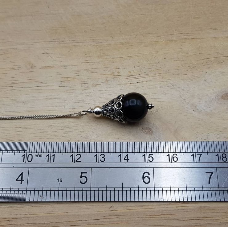 This is a silver rainbow obsidian cone pendant that I have made with Bali silver beads which are handmade beads by the world renown silversmiths of Bali and contain up to 99% silver. Bali silver is not hallmarked or stamped.