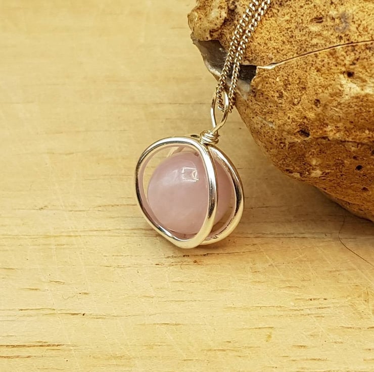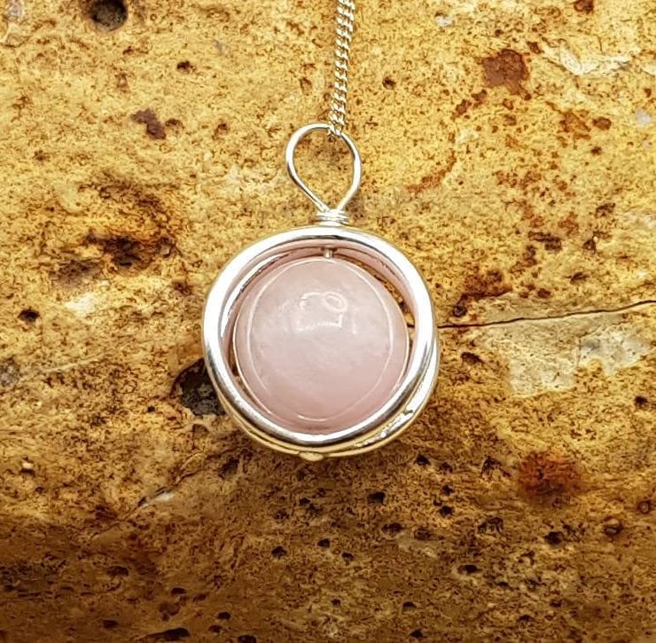 This is a sterling silver pink Kunzite circle pendant necklace.