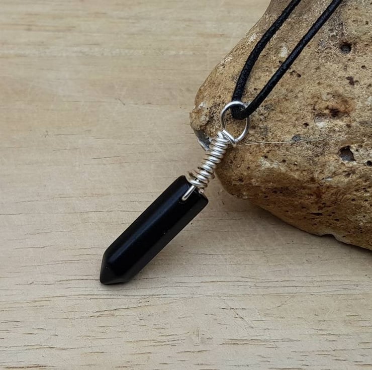 Hung on genuine leather thong simply knotted designed to put straight on without clasps approx 28 inches (vegetarian cotton cord option also available just add a note at checkout)