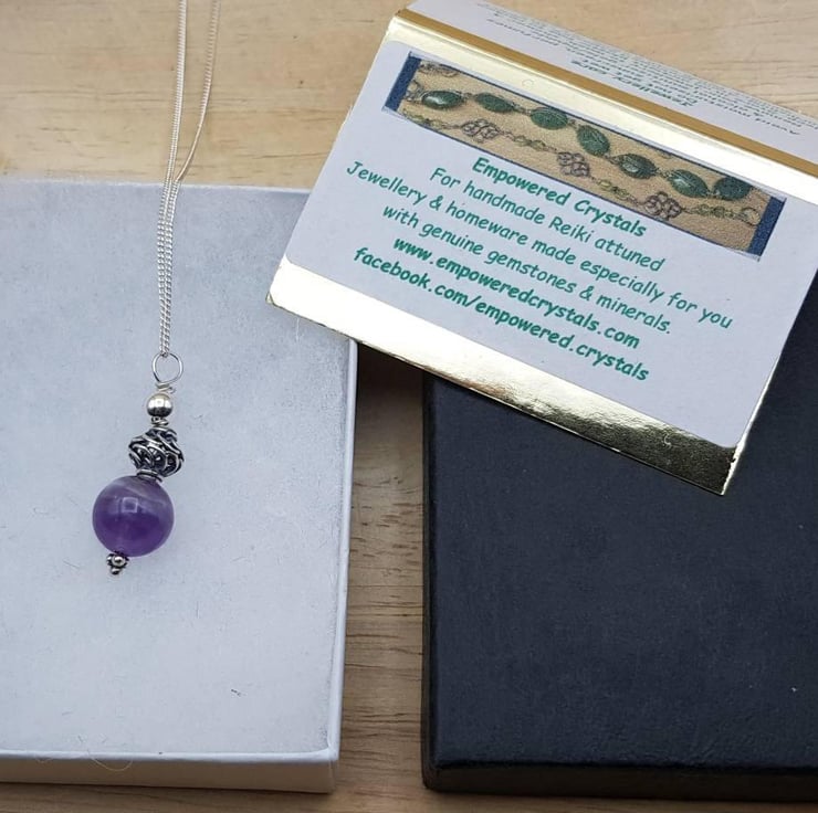 Amethyst is February's birthstone and is said to be a powerful and protective stone, guarding against psychic attack, transmuting the energy and protecting the wearer from all types of harm, including ill wishes from others. Amethyst is believed to relieve insomnia, stress, balance mood, dispel anger, and fear and anxiety.