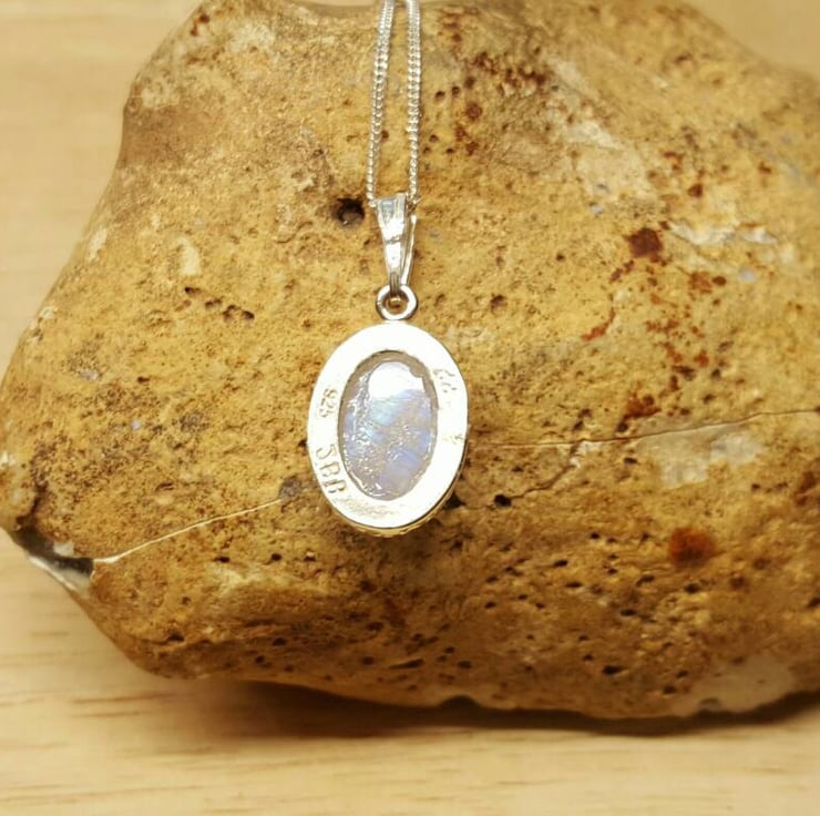 Small Rainbow Moonstone Pendant. 925 sterling silver