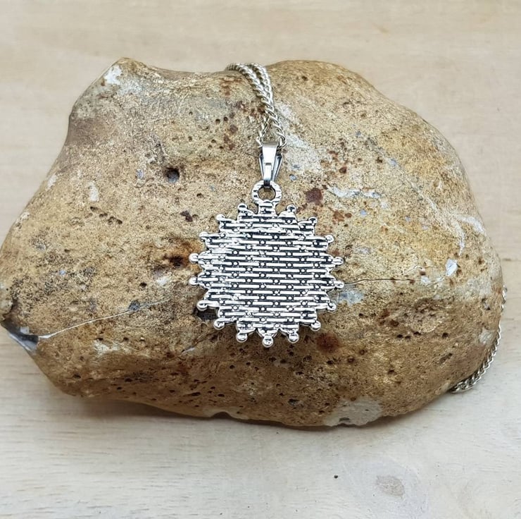 Hung on approx. 20 inch silver plated chain (16, 18 & 24 inch chains also available upon request).