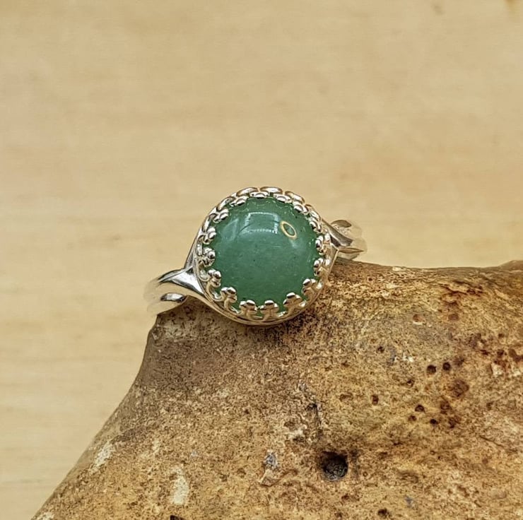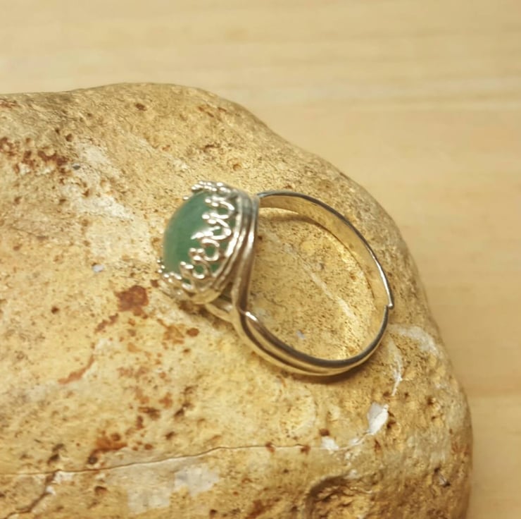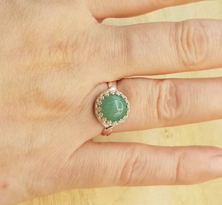 This is a women's lightweight sterling silver Green Aventurine adjustable ring.