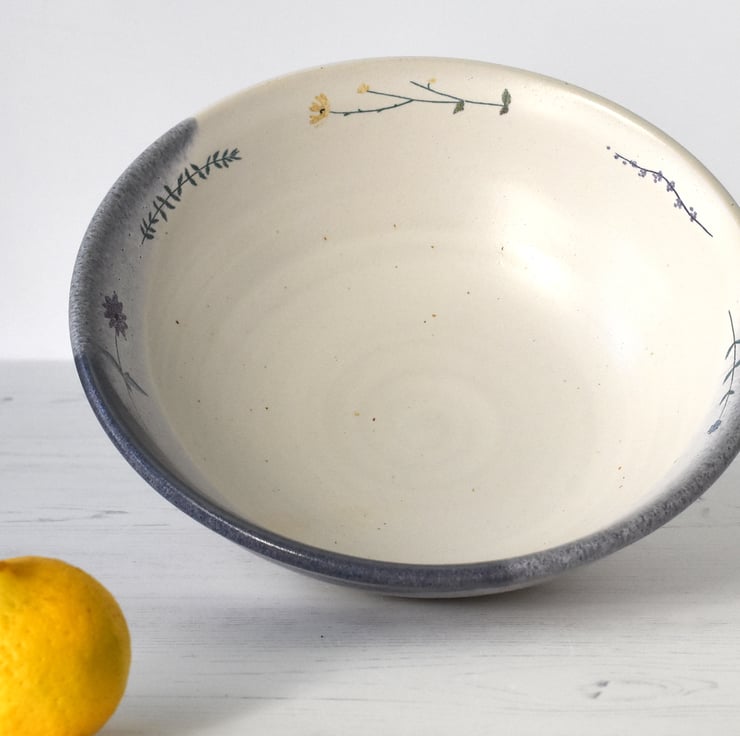 A great gift for lovers of flowers, this handmade ceramic bowl with floral rim has countless uses - from serving nibbles in front of the TV to salads at the table - or to look lovely filled with jewellery or other treasured possessions.